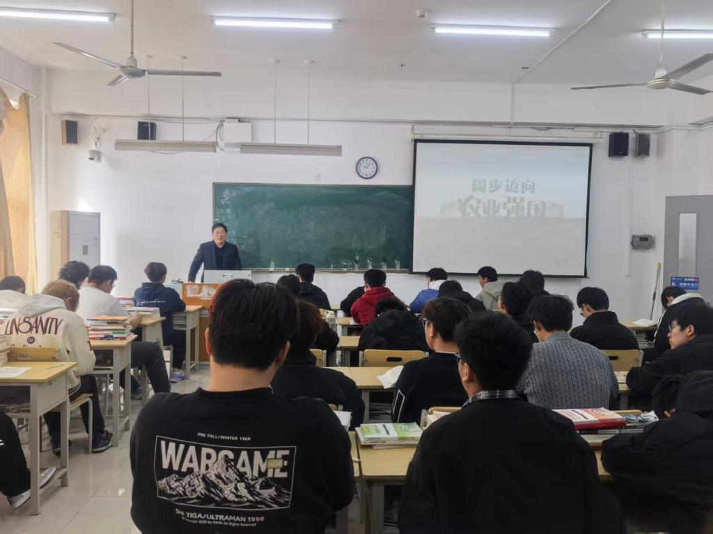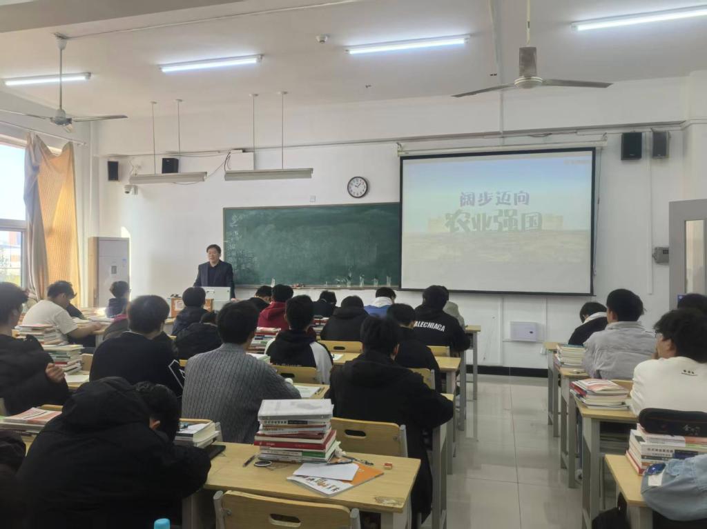 2025年10月29日,学院党委委员、副院长靳建国同志在汽车工程系5416教室为大专25智网1班的同学讲授了题为“阔步迈向农业强国”的形势与政策课。本次课程聚焦“农业强国建设与新时代青年使命担当”,深入解答了我们为什么要加快建设农业强国、要建设什么样的农业强国以及要怎样加快建设农业强国三大核心问题,系统阐明了加快建设农业强国的战略意义,激发了学生们的深刻思考。